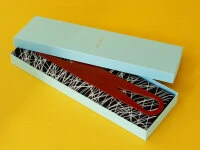 Baumwolltuch, 100 x 100 cm, das sich rasch zur schönen Tasche verwandelt. Die Idee ist in Japan uralt, neu ist der Klipp, der es leicht macht, eine Tasche aus dem