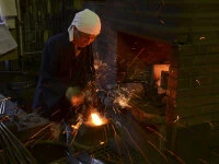 . Der Klingen-Kern besteht aus VG-10 Stahl, der mit insgesamt 34 Lagen Damast Stahl ummantelt ist. Dabei setzt Yoshimi Kato zwei unterschiedliche Sorten von Damast Stahl ein, um das optimale Härte-Flexibilität Verhältnis zu erreichen. Das ungewöhnliche Hammering der Klinge im oberen Teil ist nicht nur ein auffallendes Design-Merkmal, es hat bei Tests auch sehr gute Anti-Haft Effekte gezeigt. Die Form