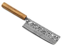möglich sind. Weitere Bestandteile sind 15% Chrom, 3% Molybdän und 2% Vanadium. Mit diesem Schneidkern bieten die Messer der Serie Zuiun eine außergewöhnlich hohe Schärfe, Schneidleistung und Beständigkeit und übertrifft sogar den Premiumstahl VG-10. Umhüllt ist der Schneidkern von 62 Lagen Damaststahl. Der Messergriff besteht aus unempfindlichen und pflegleichten Holzlaminat, achteckig, mit dekorativer Metallverzierung. Ganz besondere Aufmerksamkeit hat auch die Form der Messer und der Messerschliff verdient. Alle Zuiun Messer sind leicht konvex geschliffen, was den Klingen Stabilität, Haltbarkeit und ein überaus angenehmes Schneidverhalten gibt. Dieser Schliff leitete die Kanetsugu Cutlery aus den traditionellen japanischen Schwertern ab, die der Schwertschmied Kanetsugu bereits im 14’ten Jahrhundert schmiedete. Bekannt sind die Messermacher aus Seki für die konsequente Verbindung von traditionellen Fertigungsmethoden mit Hightech, sowohl in der Fertigung als auch in der Materialwahl. Diese japanischen Kochmesser sind also wie die berühmten Katana kreiert und bieten, ähnlich wie die Samurai-Schwerter, außergewöhnliche Schärfe und Haltbarkeit. Außerdem sind sie auch, dank dieser Schleifform, leicht zu schleifen.