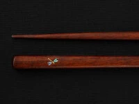 Sehr schöne japanische Essstäbchen aus Grandillo von Yumekobo. Die Essstäbchen wurden von Zogan-Künstlern mit feinen Perlmutt-Einlagen verziert. Yumekobo gilt als eine der wenigen Manufakturen in Japan, die die traditionelle Dekorationstechnik Zogan für feine, edle Gebrauchsgegenstände wie Essstäbchen einsetzen und perfekt beherrschen. Die verwendeten Hölzer sind von ausgesuchter Qualität und werden ausschließlich in traditioneller Handwerkskunst bearbeitet. Alle eingesetzen Materialien sind pure Natur. Die sehr langlebigen, edlen Esstäbchen Tonbo