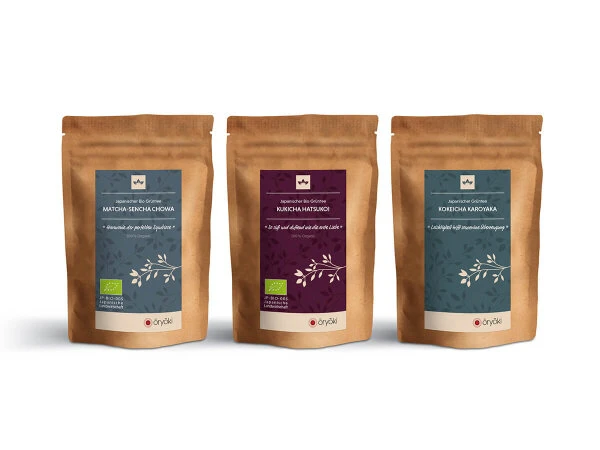 Das Test-Set PREMIUM enthält drei überaus spannende Grüne Tee, jeweils 10 g: unser Matcha-Sencha Chowa, ein erstklassiger Sencha gewürzt mit feinem Matcha. Den Kukicha Hatsukoi, den besten Kukicha, den wir bisher getrunken haben. Und den Kokeicha Karoyaka, ein sehr geschmackvoller Grüntee, der durch seine besonders aufwändige Verarbeitung ein König der Effizienz ist. Bis zu 10 Mal kann man ihn aufbrühen. Das PREMIUM-Set bietet Entdeckern also Tee-Schätze, die nur selten zu finden es aber wert sind, entdeckt zu werden. Feine, edle und ungewöhnliche Aromen warten auf Sie.