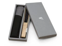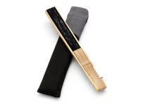 Ein Handfächer für den Herrn mit Stil. Oder auch für den gestandenen Mann. Raijin, der Shinto-Gott des Donners, strahlt Lebendigkeit und Kraft aus, elegant verewigt im noblen Schwarz. Dieser Herren-Fächer ist ein Accessoire für Männer, die den Mut haben, anders zu sein. Und den angenehmen Effekt des kühlen Windes gerne genießen. Die japanische Baumwolle wirkt wie der Bambus edel, die Spannweite von über 40 cm macht auf Wunsch einen kräftigen Wind. Der Fächer wird mit dem Stoffetui in der originalen Geschenkverpackung geliefert.