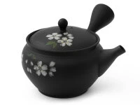 Sakura begeistert Kenner mit ihrer Schönheit und der Geschmacksverbesserung für Grünen Tee, die diesen Kannen eigen ist. Wie alle Produkte von Gyokko wurde auch diese Teekanne von Hand auf der Töpferscheibe gefertigt. Auch das Keramiksieb ist handgefertigt. Gyokko ist einer der bekanntesten Meister dieser Kunst und verwendet ausschließlich natürlichen, mineralstoffreichen Ton aus Tokoname, der bei hohen Temperaturen gebrannt werden kann. Seine feinen Muster sind oft Vorlage für Kopierversuche, was in Japan als großes Kompliment gilt. Die schöne Teekanne wiegt ca. 260 Gramm und fasst ungefähr 350 ml. Sie ist sehr gut mit den schwarzen Teeschalen von Meister Gyokko kombinierbar.