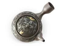 ist aus dem berühmten, natürlichen lila Ton der Mie Präfektur gefertigt und kunstvoll mit Gold verziert. So, wie es dort seit hunderten von Jahren Tradition ist. Dieser Ton ist sehr reich an Eisen und Mineralien und gehört zu den wertvollsten Rohstoffen für Teegeschirr. Die Teekannen aus Banko Yaki werden besonders für hochklassige, milde Tee Sorten wie beispielsweise Gyokuro, Kabusecha und edle Sencha empfohlen.