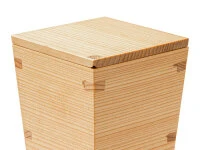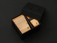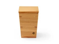 Set aus einer Sakekaraffe und zwei Sakebeschern. Ein guter Sake wird, genossen aus dem Sakegeschirr der Marke Omoeraku, zu etwas Besonderem. Der feine Zedernduft unterstützt wunderbar die Aromen des Sake. Nikko heißt das ausgewählte Zedern-Holz der Karaffe Tokkuri. Es ist ein eingetragenes Weltkulturerbe. Zur Pflege des Baumbestandes wird regelmäßig Holz geschlagen, lange gelagert und zum Beispiel zu hochwertigen Gefäßen wie Tokkuri und Masu von Hand verarbeitet. Der Genuss von Sake aus hölzernen Karaffen und Bechern hat in Japan eine lange Tradition. Aber Perfektionierung liegt den Holzhandwerkern von Kanuma natürlich im Blut. So ist es nur folgerichtig, dass das Sakegeschirr mit dem Tochigi Excellent Design Award ausgezeichnet wurde.