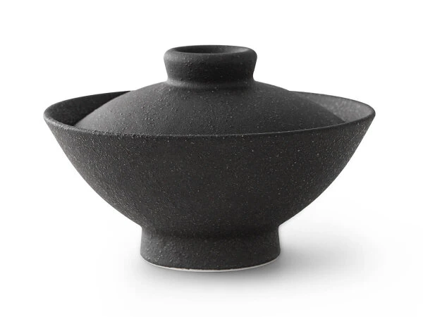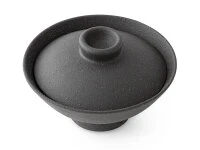 Suppenschale Kokuyou mit Deckel, japanisches Steingut. Die schöne Schale hat einen Durchmesser von ca. 15 cm und ist 7 cm hoch. Der Deckel hält die Suppe warm oder kann für eine kleine Beilage verwendet werden. Die elegante japanische Geschirrserie Kokuyou wird in Gifu gefertigt. Das Design des Steingut Geschirrs ist minimalistisch schlicht und doch raffiniert, was oft erst auf den zweiten Blick erkennbar wird. Eindrucksvoll unterstreicht die markante Oberfläche, die das Gefühl von traditioneller Handarbeit spürbar vermittelt, die ausgewogenen Formen. Bitte beachten Sie, dass es bei dieser Geschirrserie an der Unterseite durch die traditionelle Herstellung zu leichten Unregelmäßigkeiten kommen kann.