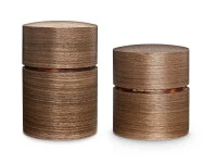 (Teedosen) haben einen verkürzten Deckel, so dass der Kern-Zylinder aus Kirschbaumrinde einen markanten, traditionellen Akzent zur äußeren Holzschicht setzt. Obizutus sind also Teedosen, die gleichermaßen die Vorteile des Materials Kirschbaumrinde sowie der traditionellen Handwerkskunst nutzen und mit modernen Designs kombinieren. Folgende Designs stehen zur Auswahl: