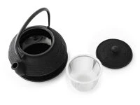 Schöner original Gusseisen Untersetzer für Tetsubin und Teekannen aus Japan. Die Untersetzer werden von Hand in der Manufaktur Iwachu aus natürlichen Materialien gefertigt. Das Gantetsu Eisen ist mit einer Mischung aus Grüner Tee, Essig und Eisensand beschichtet. Hergestellt werden die Topfuntersetzer mit der Kamyaki-Technik. Das Eisen wird bei 800° C zur Oxidation gebacken, was einen natürlichen Rostschutz bewirkt. Die Füße haben einen abnehmbaren Kratzschutz. Das Ginkgo Muster ist ein traditionelles Muster, das sehr gut zu Teekannen von Iwachu und anderen Herstellern passt. Bitte achten Sie auf den Durchmesser. Geschenkverpackung mit Iwachu Zeichen.